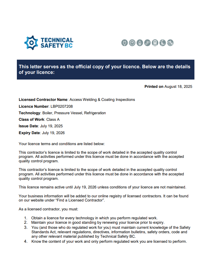 – Meet the requirements and guidelines of API, AWS, ASME, ASTM, AWWA, CSA, CWB, ISO, AMPP-NACE-SSPC, TSBC,